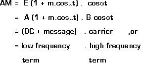 The mathematical equation of a modulation technique, in this case: 'Amplitude Modulation', is shown here